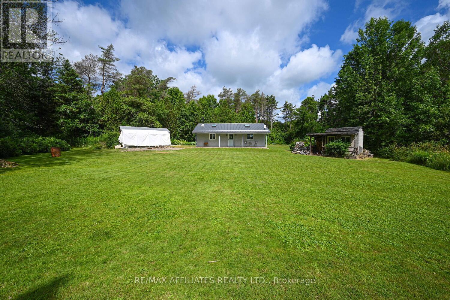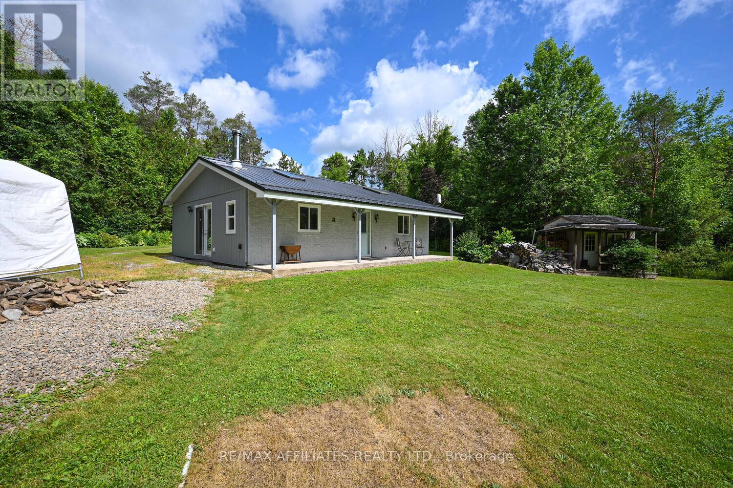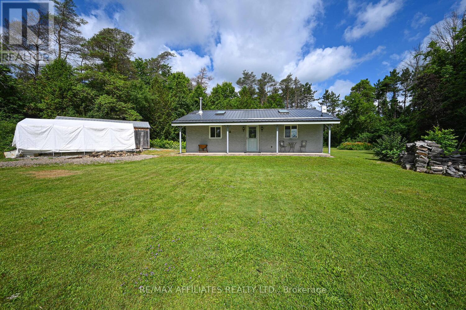 Discover the perfect blend of peaceful seclusion and modern comfort at this charming year-round home set on 1.44 acres of landscaped and private grounds. Whether you're seeking a serene retreat or looking to downsize in style, this property offers the ideal low-maintenance lifestyle in the country. Set well back from the road and surrounded by mature trees and lush perennial gardens, this home offers tranquility and privacy with views of picturesque Bellamy Lake. Enjoy morning coffee from the inviting front porch, where you can take in the beauty of nature in every season. The fully renovated interior is both stylish and functional, with wide plank flooring and thoughtful updates throughout. The bright, open-concept kitchen features quartz countertops, ample cabinetry, and a clean, modern design. The spacious bathroom includes in-unit laundry for added convenience. Cozy up by the propane fireplace or wood stove on cooler days perfect for year-round comfort. With main floor living, this home is perfect for downsizers or those seeking a relaxed, accessible layout. The property also includes a 12' x 24' shed with a reinforced floor, providing excellent storage for tools, toys, outdoor gear, or hobby space. There's plenty of room for gardening, outdoor entertaining, or simply enjoying the peace and quiet. Located just minutes from the public boat launch at Bellamy Lake and within a short drive to several other spectacular lakes and golf courses of the Rideau Lakes Region, outdoor enthusiasts will feel right at home. Everyday essentials are just a short drive away only 5 minutes to the friendly Village of Toledo and 10 minutes to charming Athens. This is a rare opportunity to own a turn-key escape that blends comfort, convenience, and natural beauty in one of Eastern Ontario's most scenic regions. Don't miss your chance to make this exceptional property your own a true hidden gem with views you'll never tire of. (id:48755)