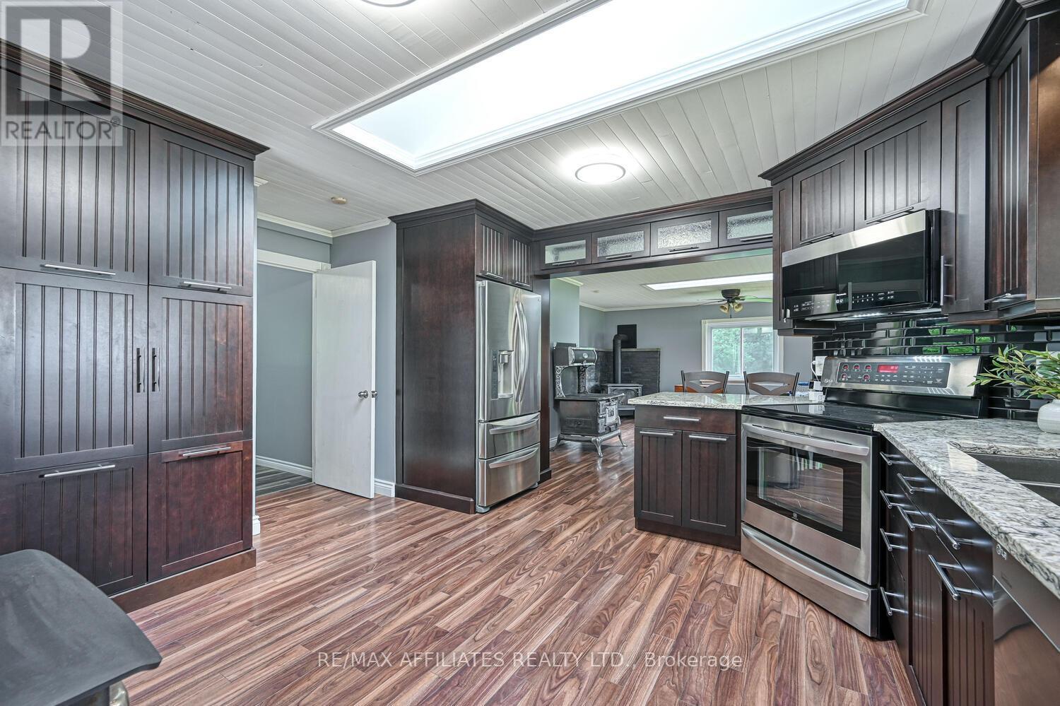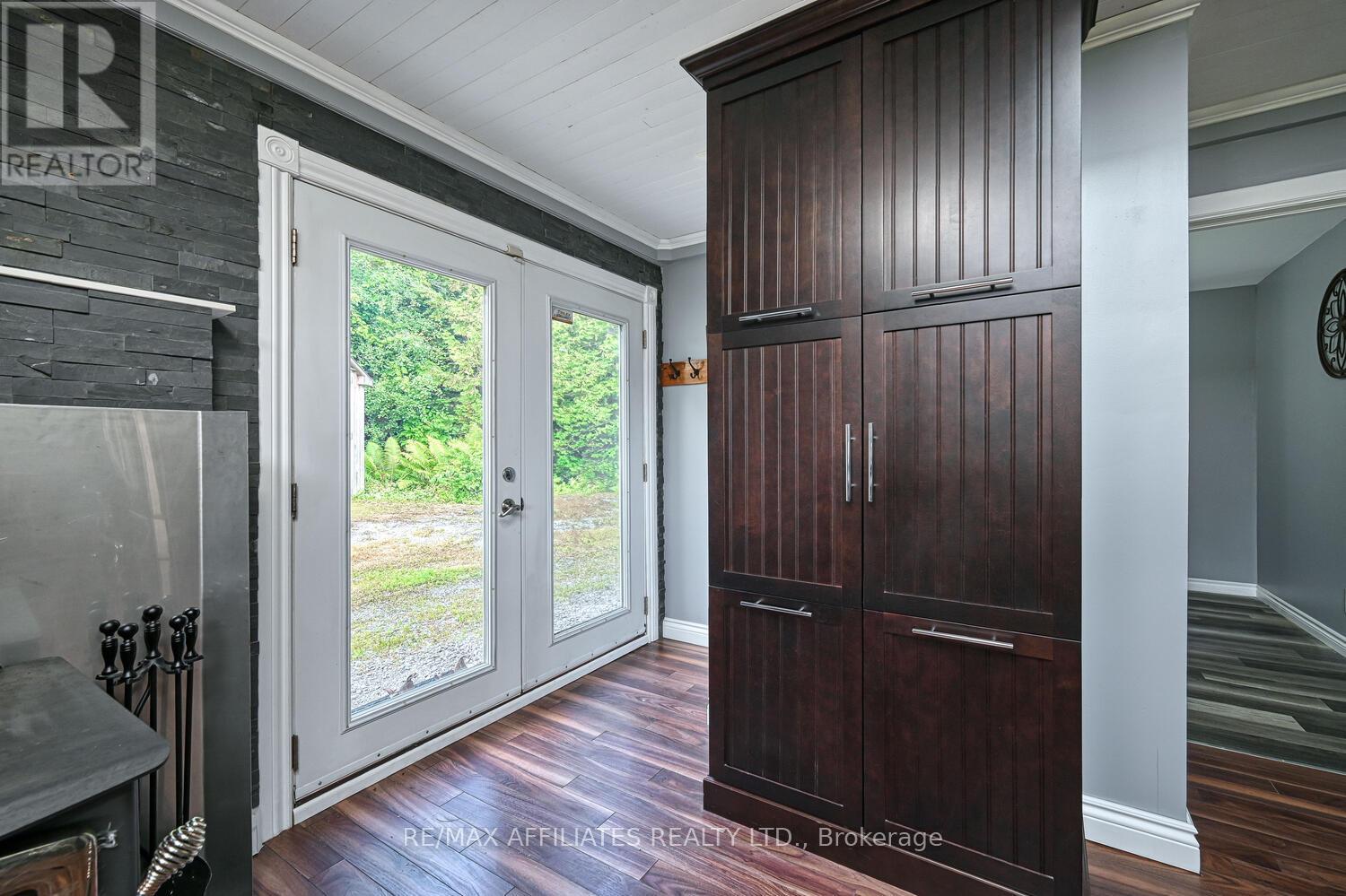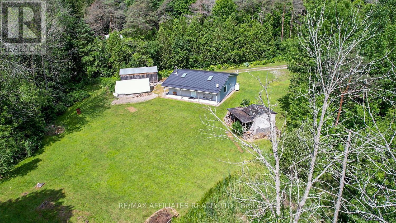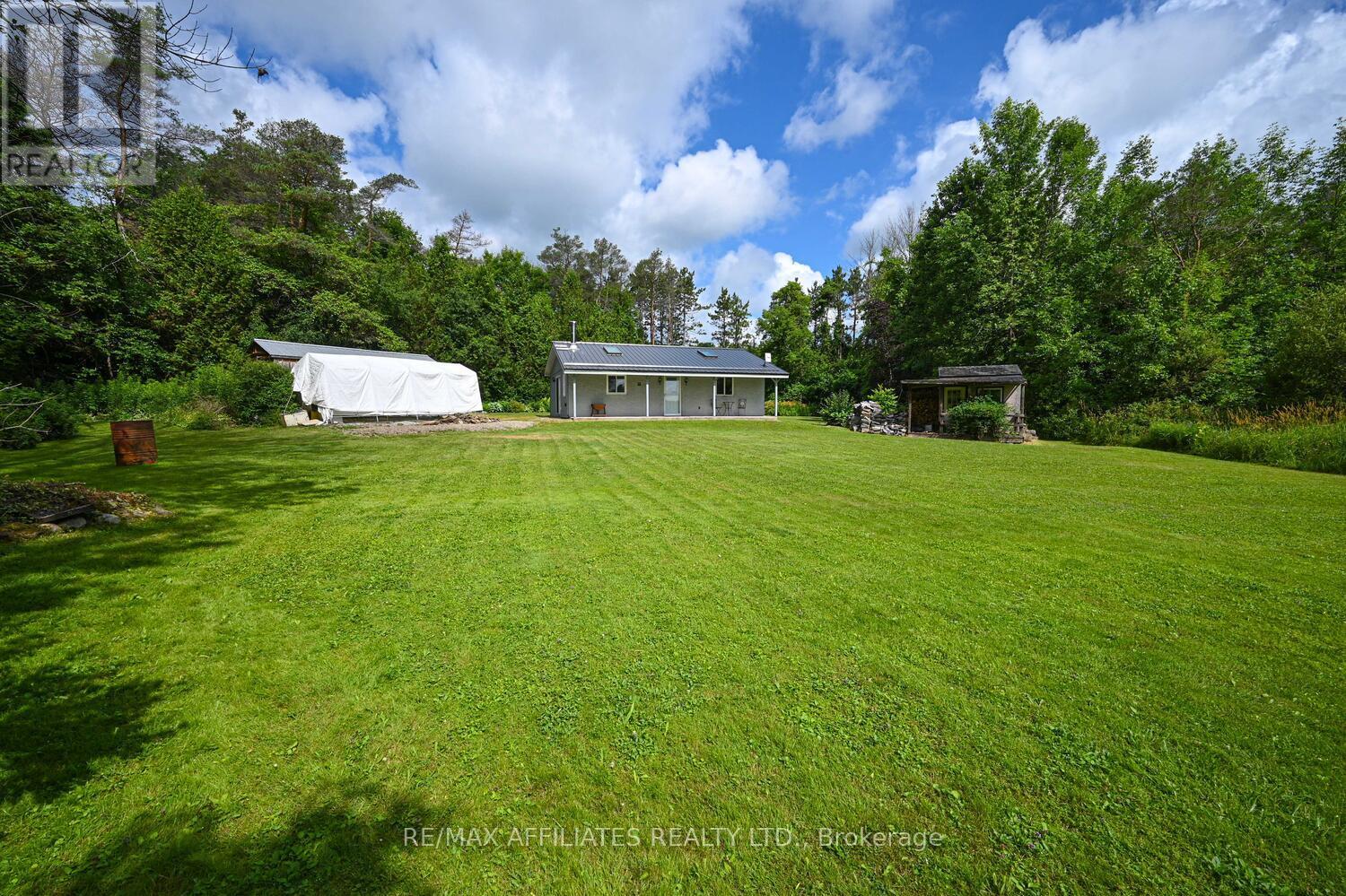 Discover the perfect blend of peaceful seclusion and modern comfort at this charming year-round home set on 1.44 acres of landscaped and private grounds. Whether you're seeking a serene retreat or looking to downsize in style, this property offers the ideal low-maintenance lifestyle in the country. Set well back from the road and surrounded by mature trees and lush perennial gardens, this home offers tranquility and privacy with views of picturesque Bellamy Lake. Enjoy morning coffee from the inviting front porch, where you can take in the beauty of nature in every season. The fully renovated interior is both stylish and functional, with wide plank flooring and thoughtful updates throughout. The bright, open-concept kitchen features quartz countertops, ample cabinetry, and a clean, modern design. The spacious bathroom includes in-unit laundry for added convenience. Cozy up by the propane fireplace or wood stove on cooler days perfect for year-round comfort. With main floor living, this home is perfect for downsizers or those seeking a relaxed, accessible layout. The property also includes a 12' x 24' shed with a reinforced floor, providing excellent storage for tools, toys, outdoor gear, or hobby space. There's plenty of room for gardening, outdoor entertaining, or simply enjoying the peace and quiet. Located just minutes from the public boat launch at Bellamy Lake and within a short drive to several other spectacular lakes and golf courses of the Rideau Lakes Region, outdoor enthusiasts will feel right at home. Everyday essentials are just a short drive away only 5 minutes to the friendly Village of Toledo and 10 minutes to charming Athens. This is a rare opportunity to own a turn-key escape that blends comfort, convenience, and natural beauty in one of Eastern Ontario's most scenic regions. Don't miss your chance to make this exceptional property your own a true hidden gem with views you'll never tire of. (id:48755)